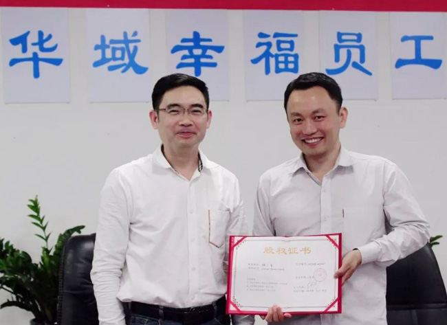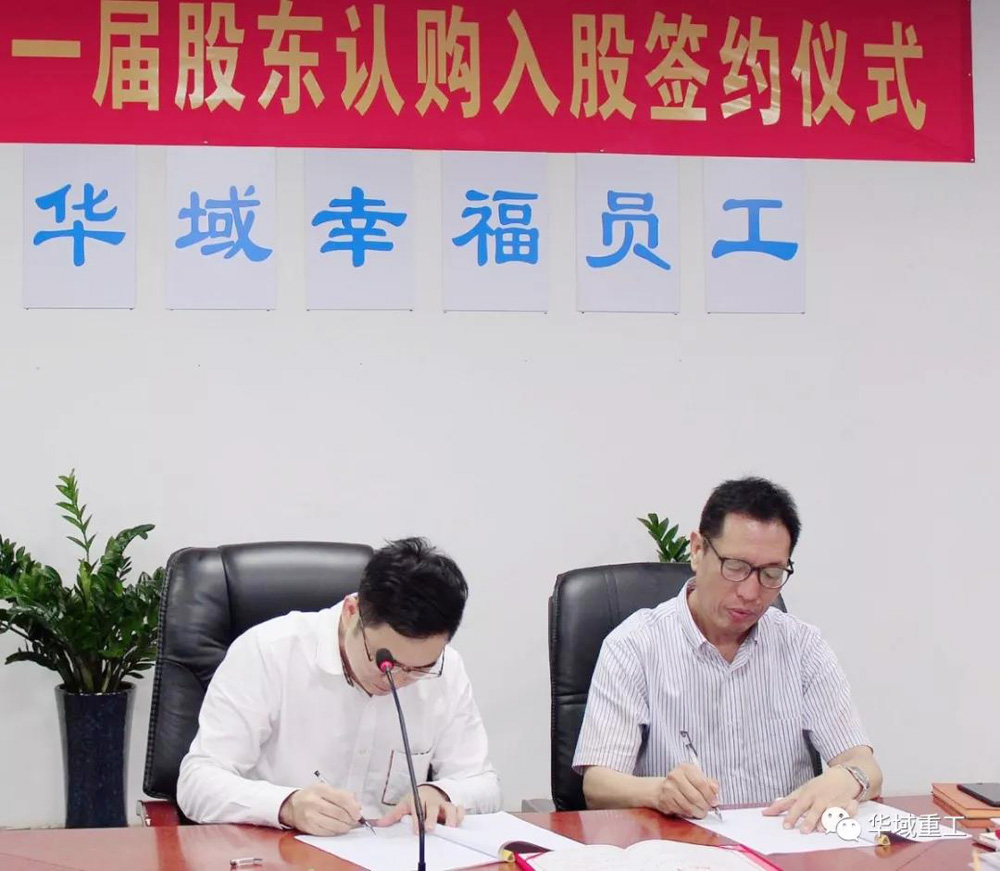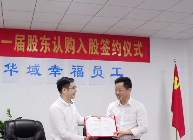 簽約儀式中,董事長易新河同志一一與每位股東親筆簽訂股權協議,并親自為每位華域的股東頒發股權證書。易董的這份真誠,令在場的股東們激動不已。