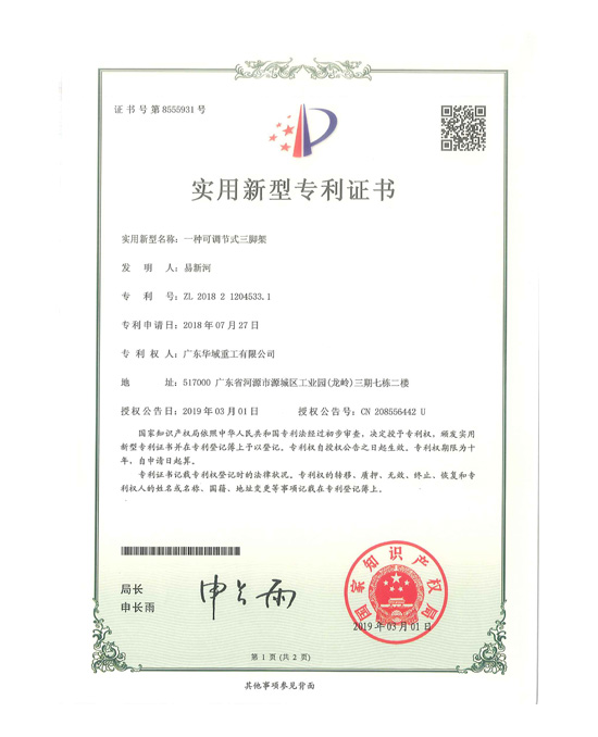 一種可調(diào)節(jié)式三腳架專利證書