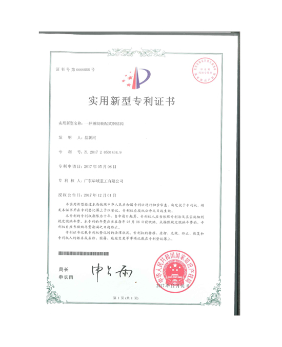 實(shí)用新型一種預(yù)制裝配式鋼結(jié)構(gòu)2017專利證書