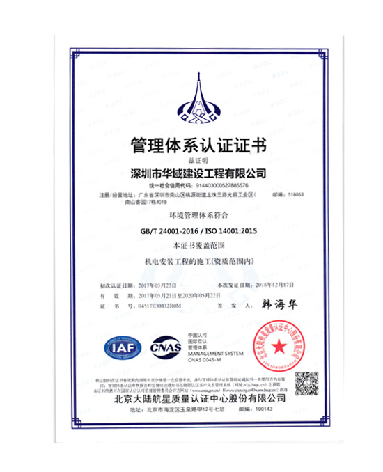 華域建設(shè)ISO14001環(huán)境管理體系認(rèn)證